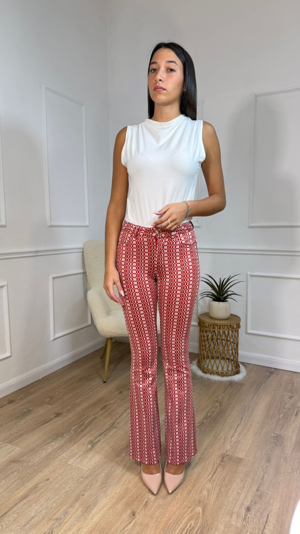 Pantalone Liu Jo motivo geometrico rosso e bianco