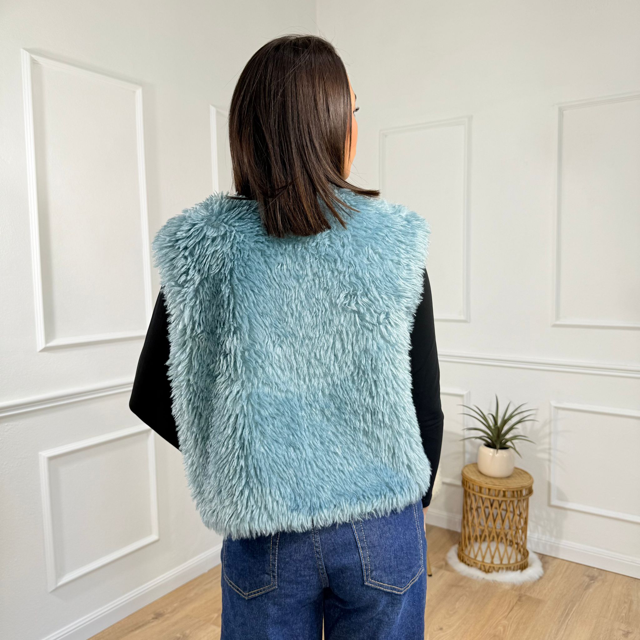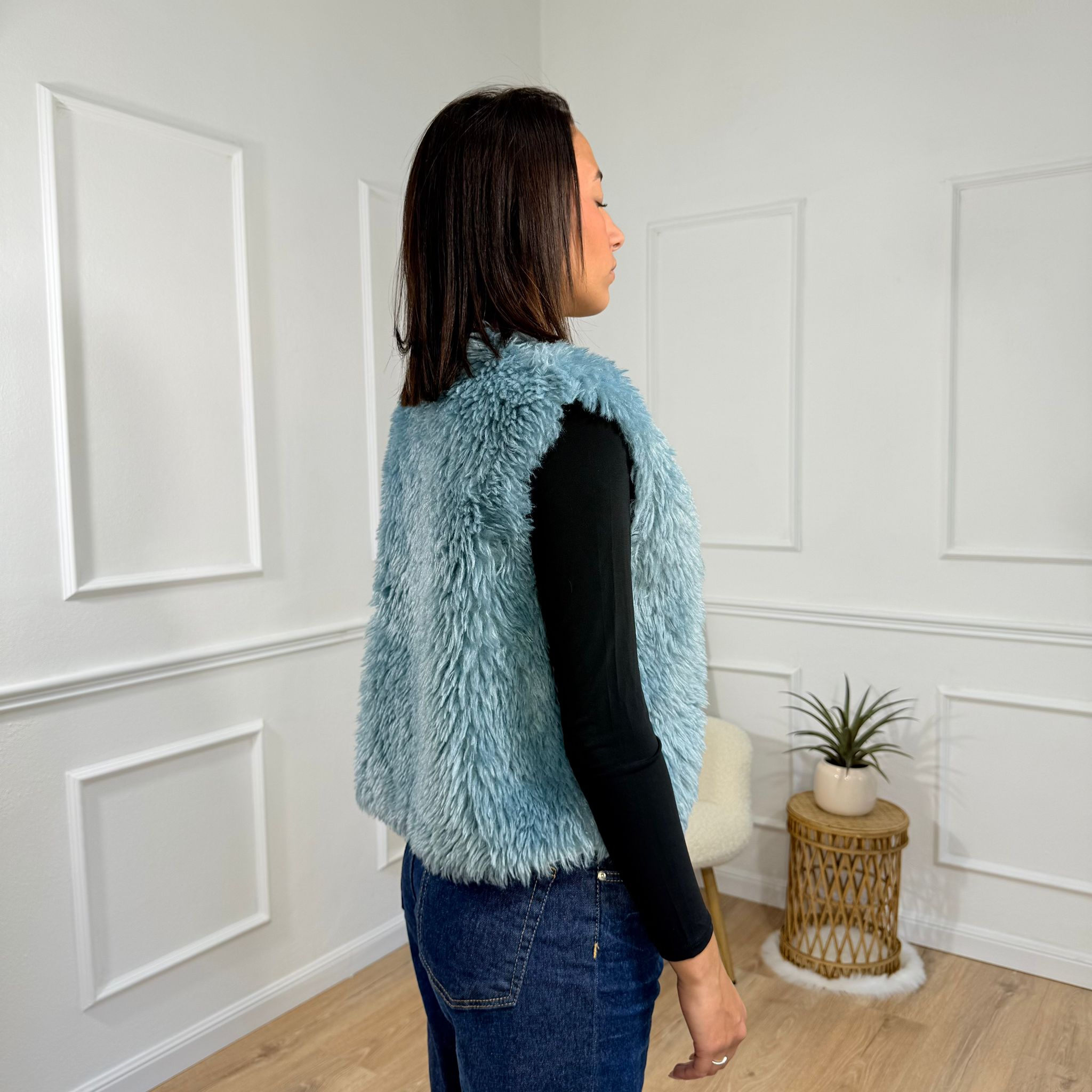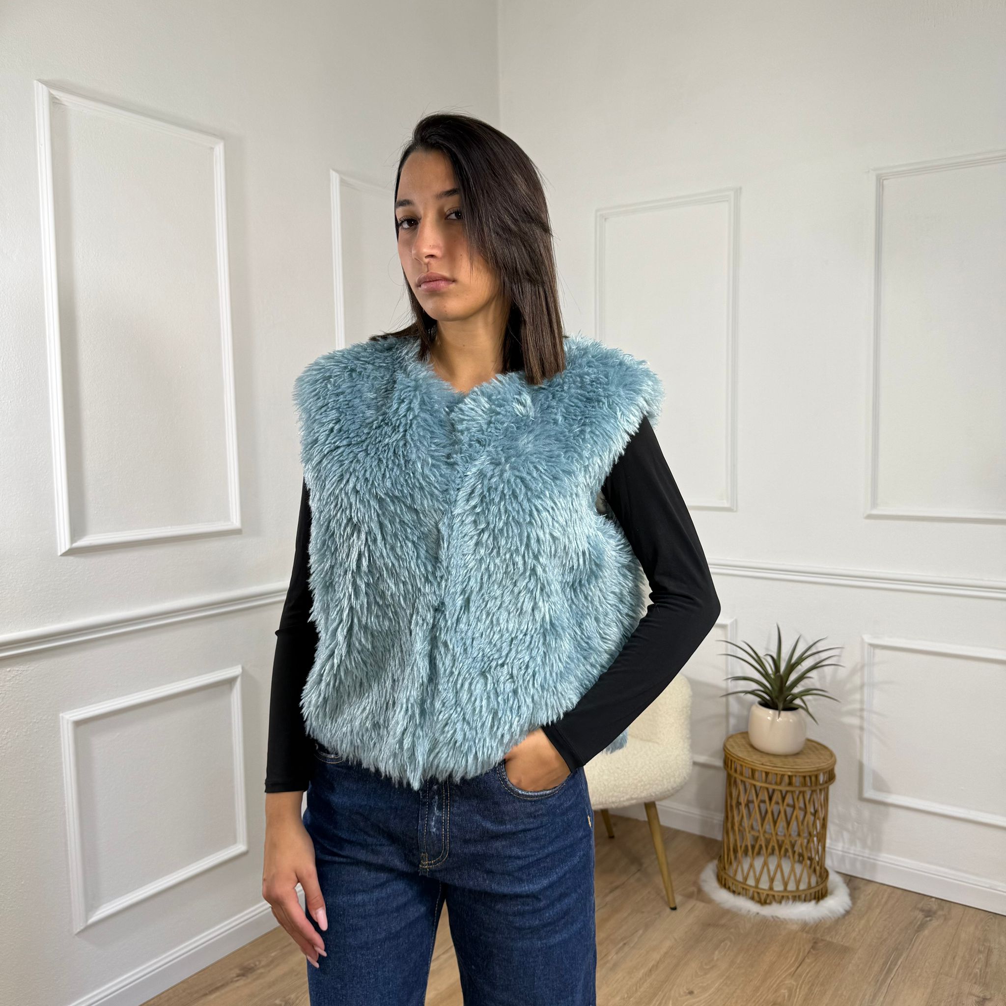 La modella è alta 1,73 m, misura 66 cm di vita e indossa la taglia S (40 italiana).