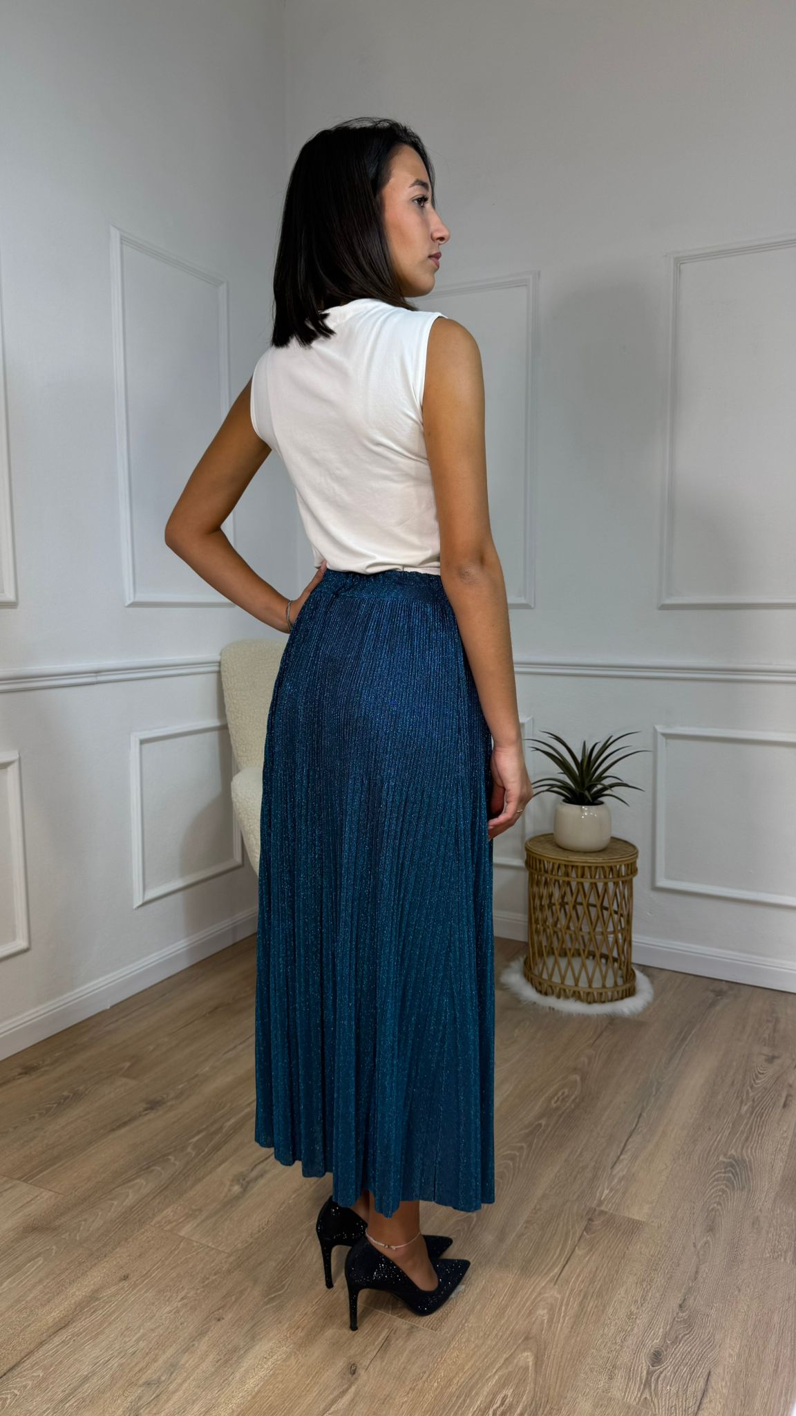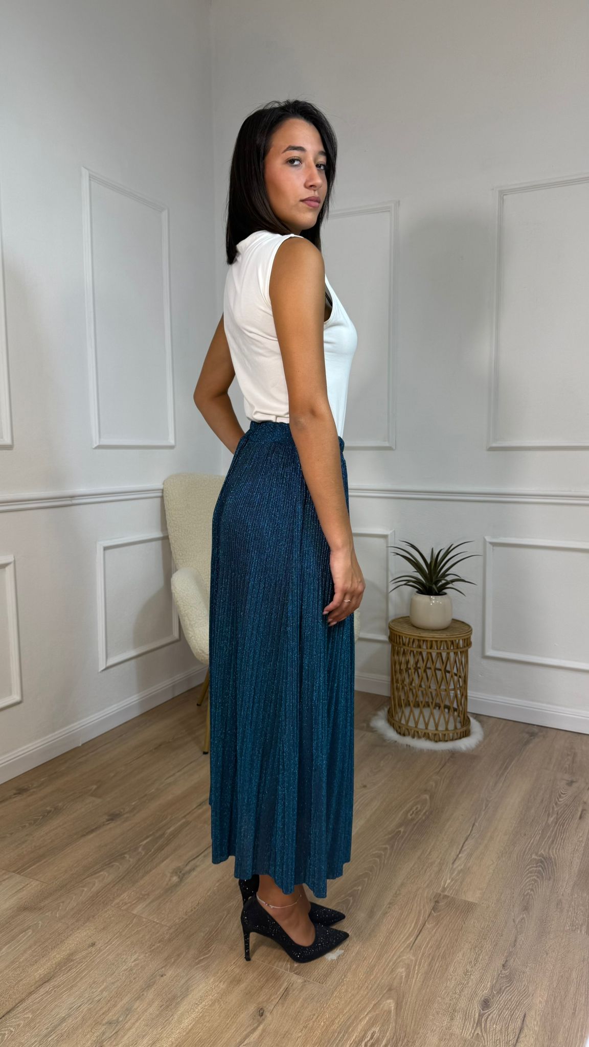 Questa gonna lunga plissettata nella raffinata tonalità teal unisce un taglio fluido a una texture elegante, ideale per chi cerca un capo versatile e sofisticato. Perfetta per creare un look fresco e curato, si adatta facilmente a diverse occasioni, dal lavoro agli eventi serali. La sua vestibilità valorizza la silhouette, assicurando comfort e stile in ogni movimento.