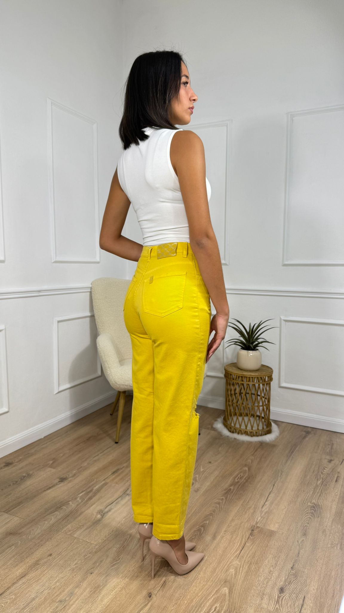 Questi jeans Lui Jo Senape a vita alta combinano un design grintoso con dettagli strappati sulle ginocchia, conferendo un tocco contemporaneo e deciso al tuo outfit. La tonalità gialla vivace li rende perfetti per chi desidera distinguersi con stile. Ideali per look casual e audaci, si abbinano facilmente a top neutri e tacchi, creando un contrasto elegante che valorizza ogni occasione.