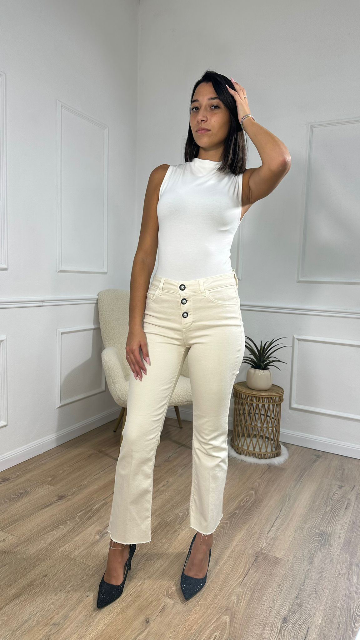 La modella è alta 1,73 m, misura 66 cm di vita e indossa la taglia S (40 italiana).