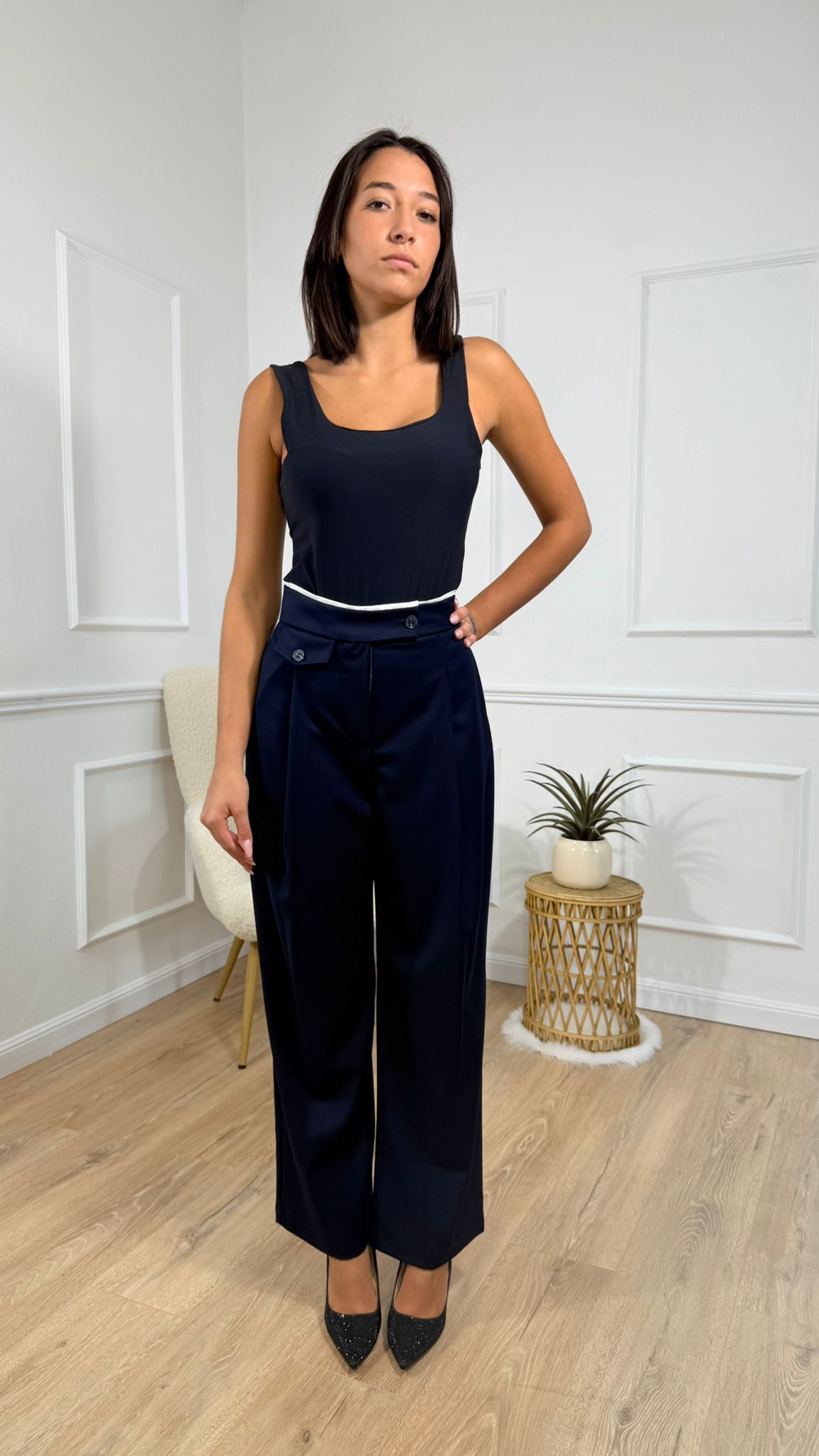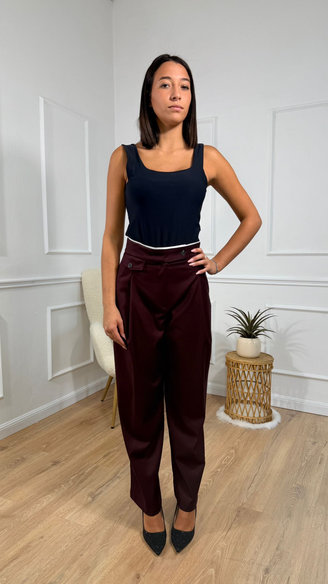 I pantaloni B-Yu sono un capo dal design marinaro-chic, caratterizzati da una vita alta e una gamba larga che conferiscono eleganza e struttura al look. Disponibili in tre tonalità – beige, blu e bordeaux – si distinguono per la cintura bianca e i dettagli a bottoni, elementi raffinati che valorizzano la silhouette. Perfetti per chi cerca uno stile sofisticato e femminile, adatto a contesti sia professionali che formali.