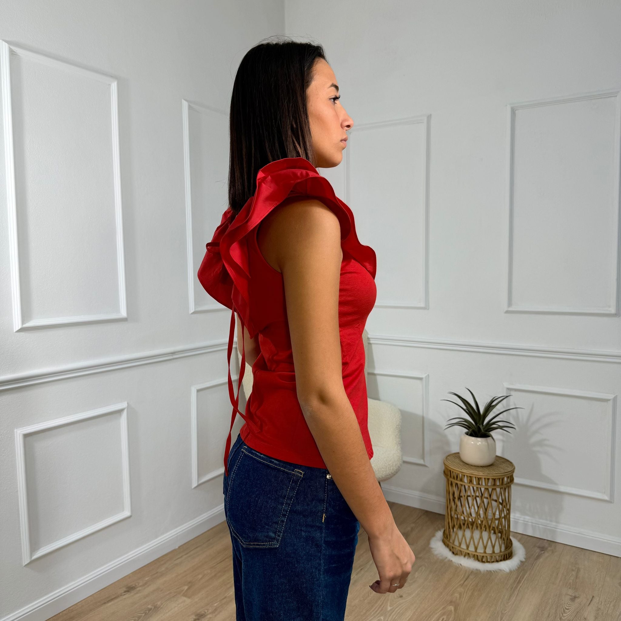 La modella è alta 1,73 m, misura 66 cm di vita e indossa la taglia S (40 italiana).