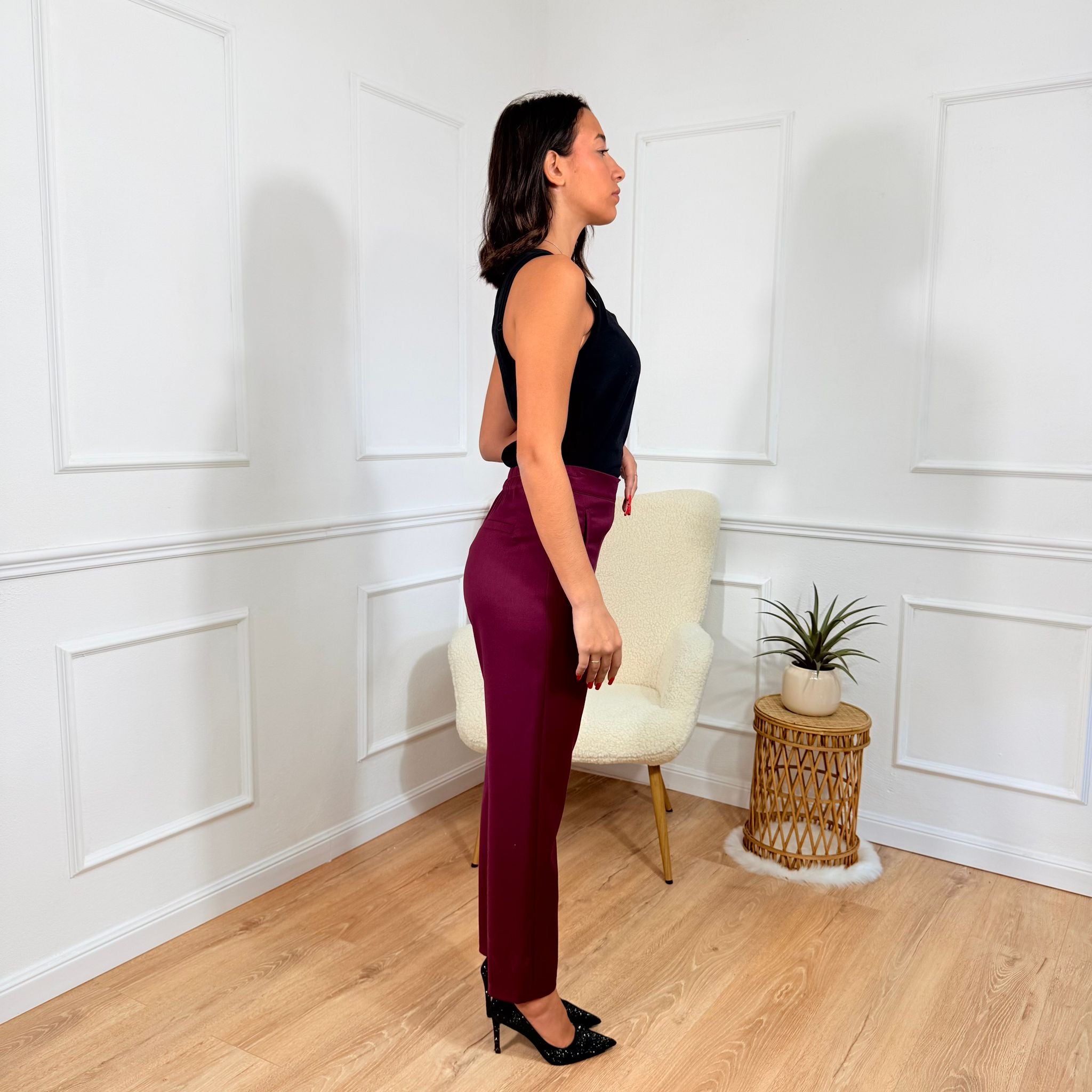 Pantalone a Vita Alta con Linea Sagomata Jijil bordeaux