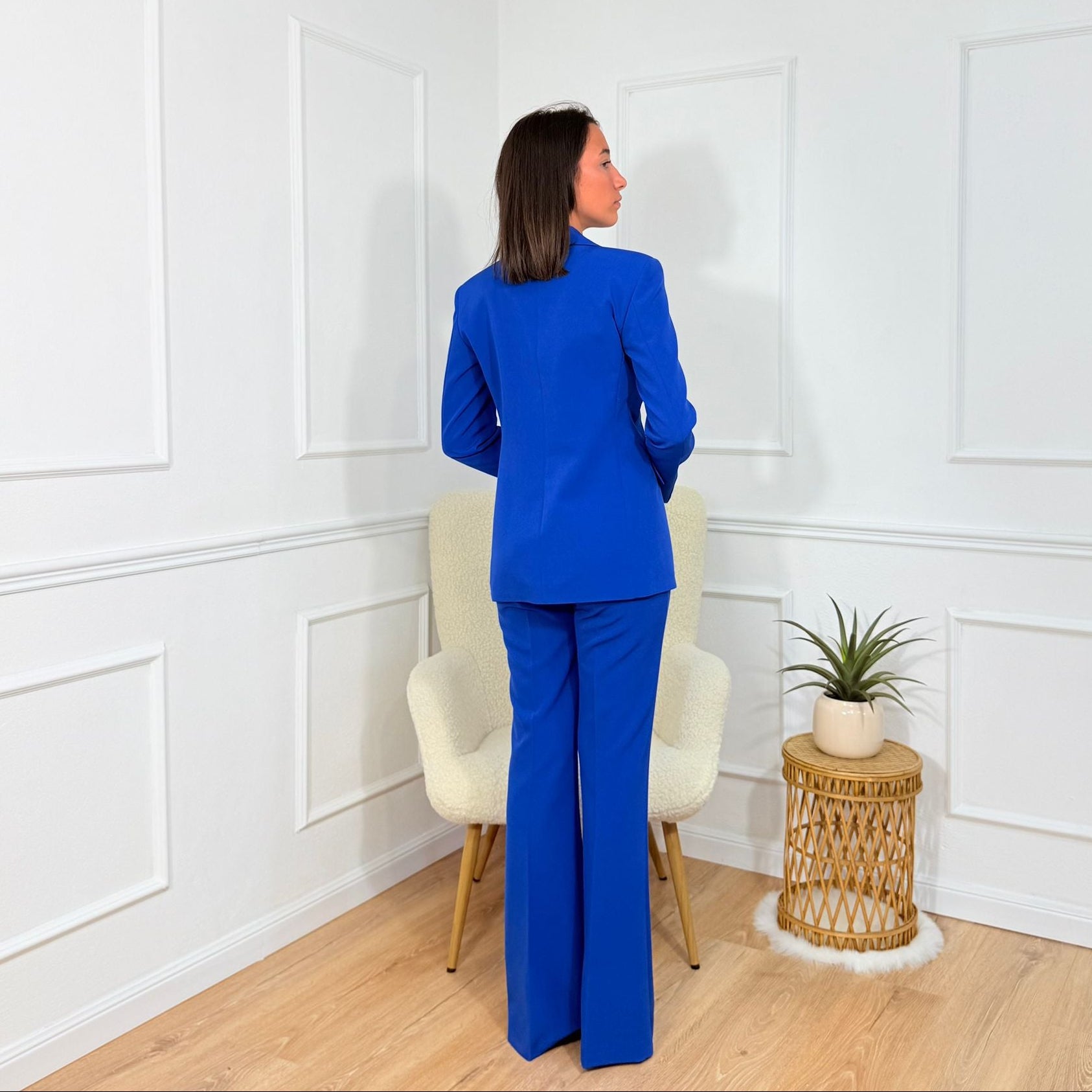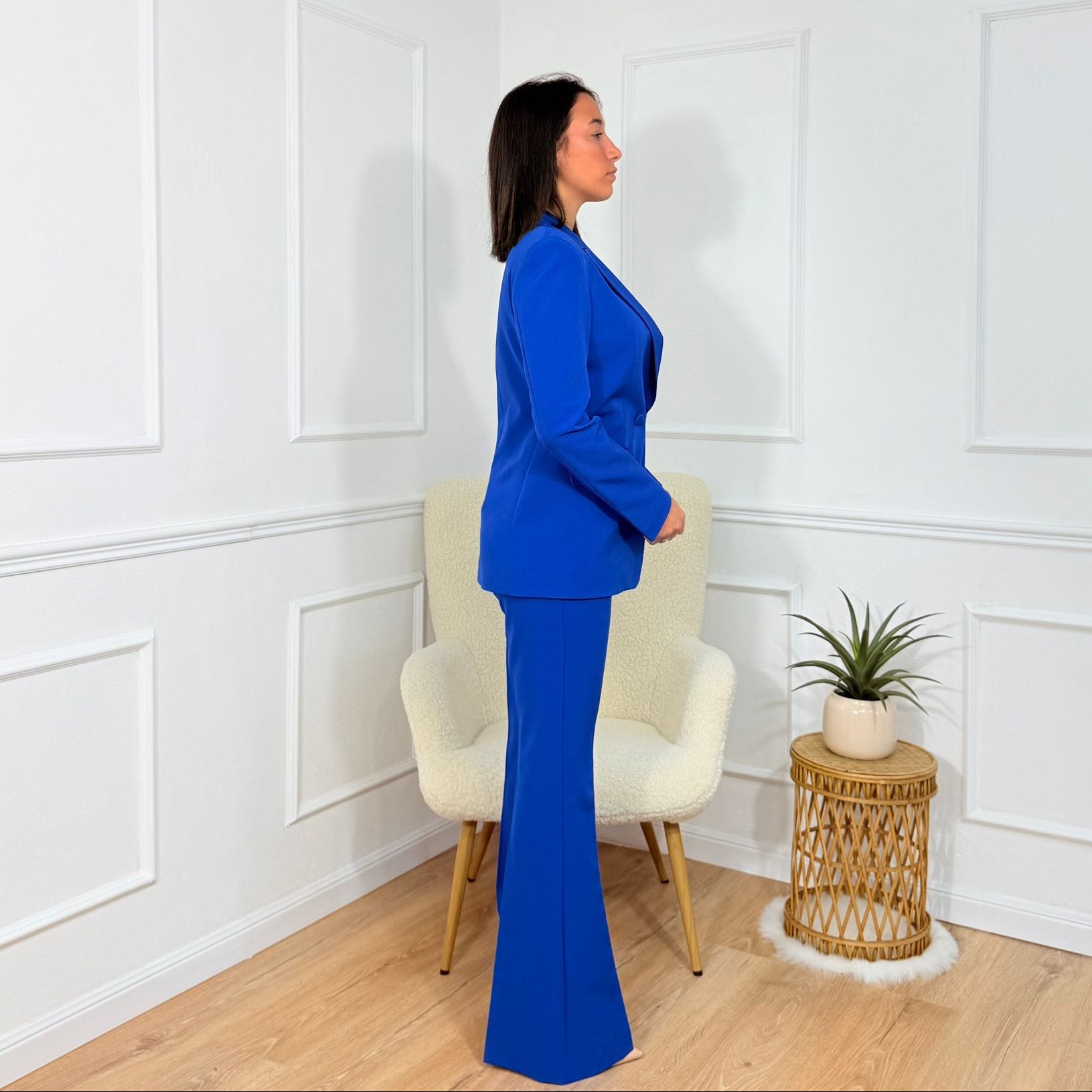 Tailleur sartoriale con giacca scollata e pantaloni a zampa Cristina Effe Blu