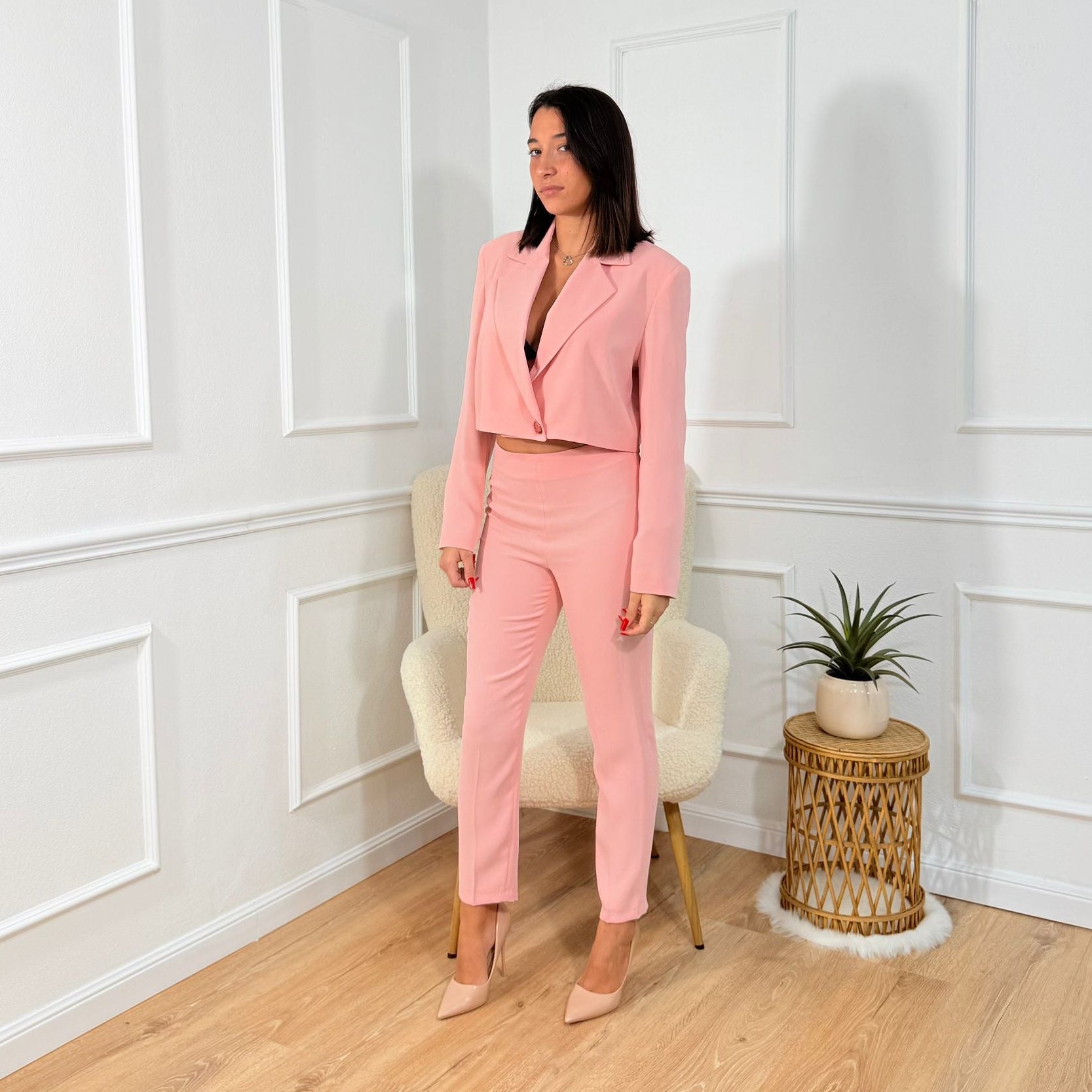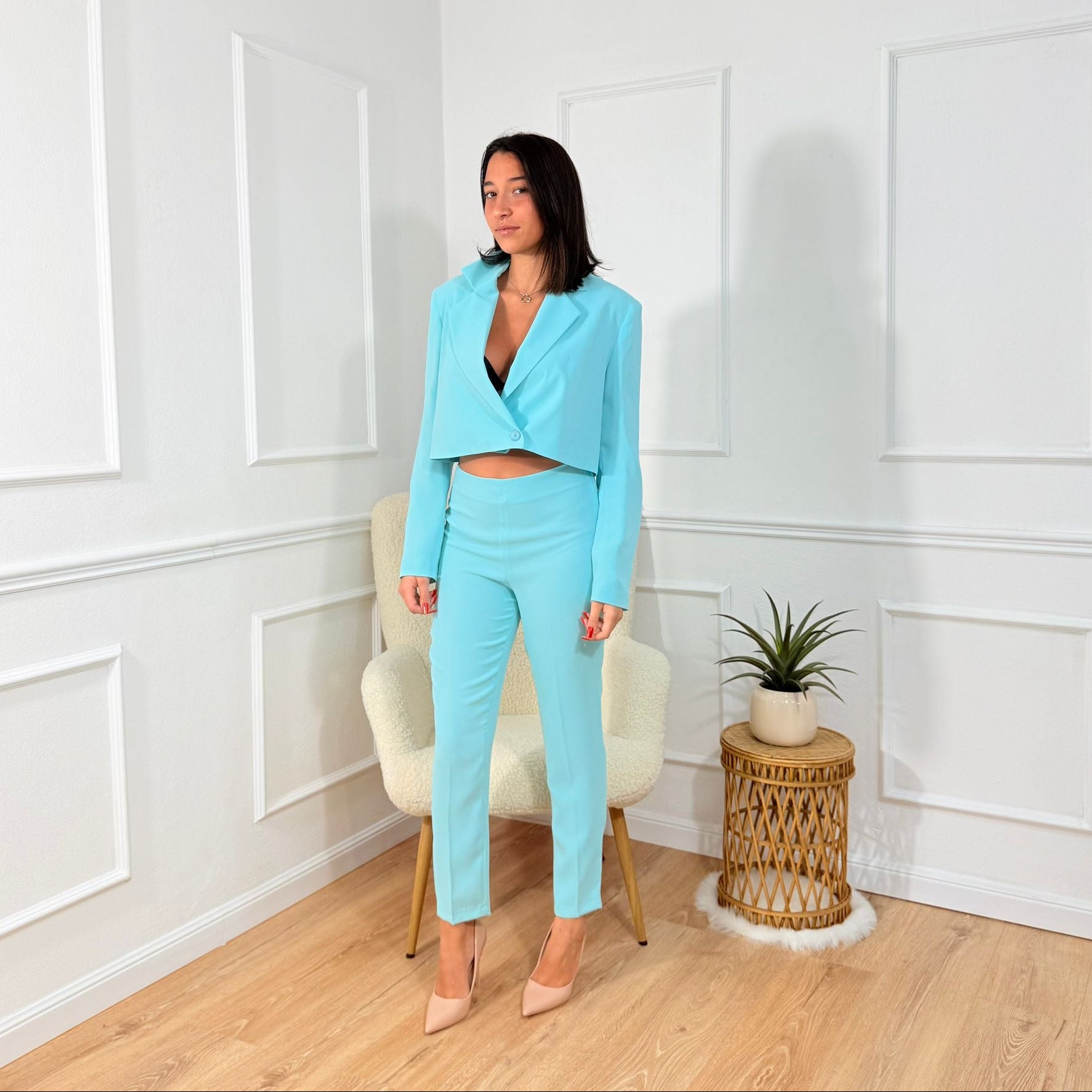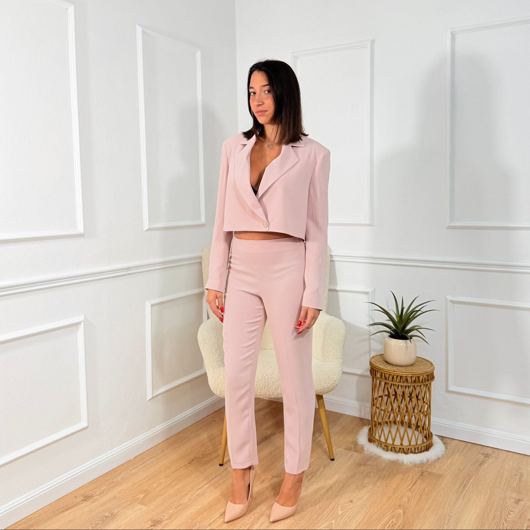 Tailleur corto con giacca cropped e pantaloni a vita alta Tona Risci