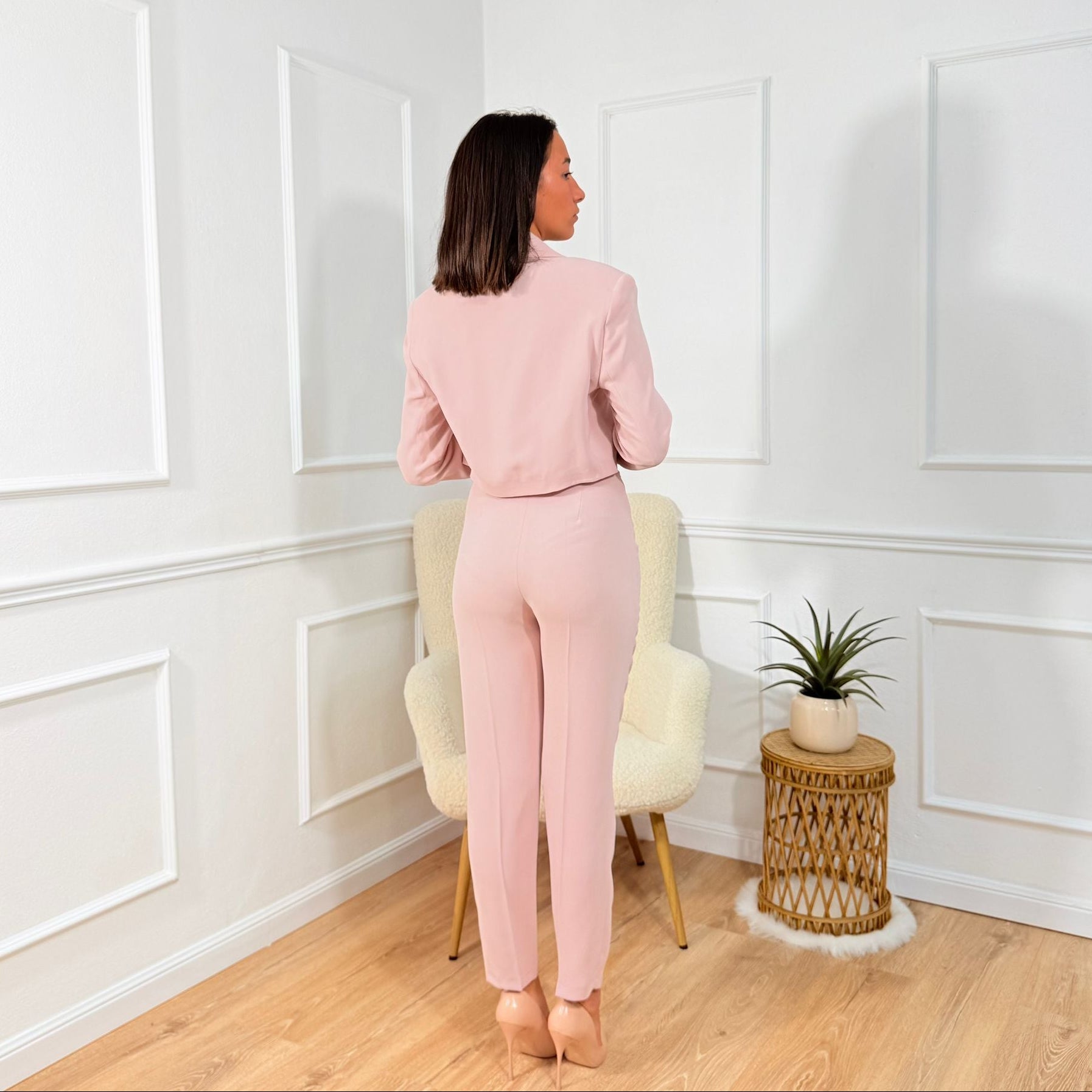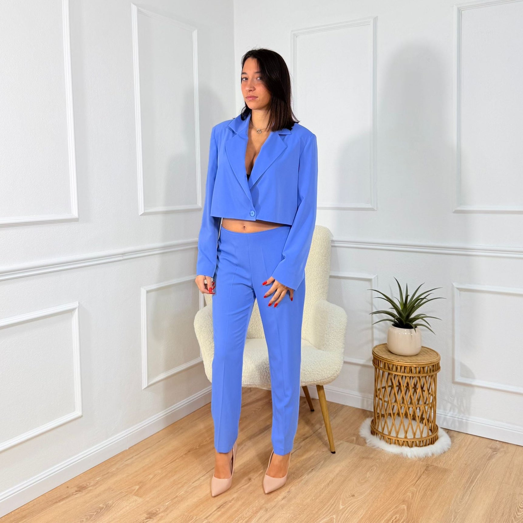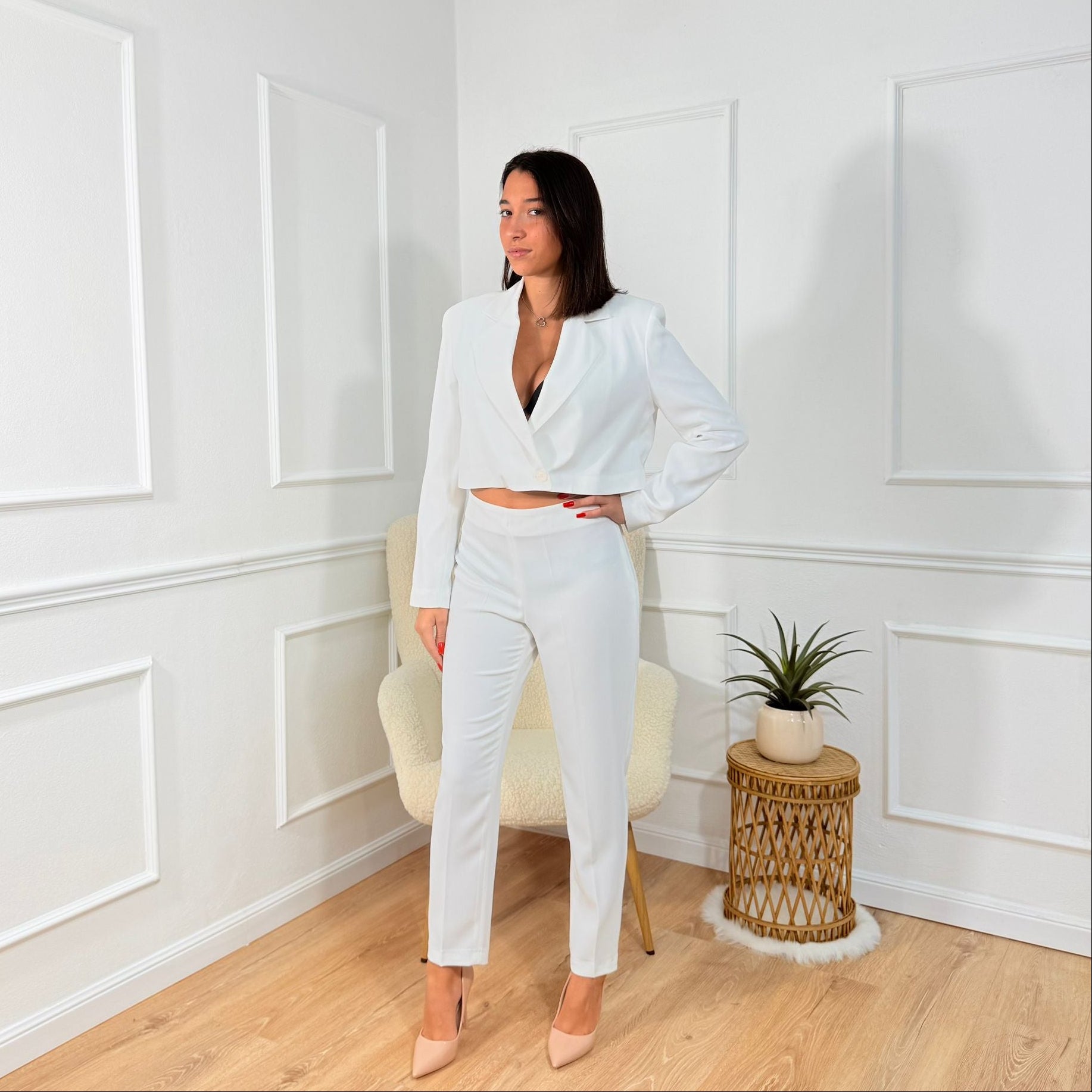 Tailleur corto con giacca cropped e pantaloni a vita alta Tona Risci